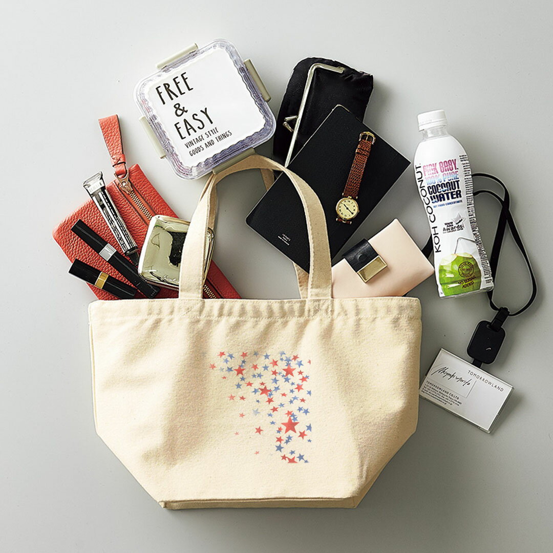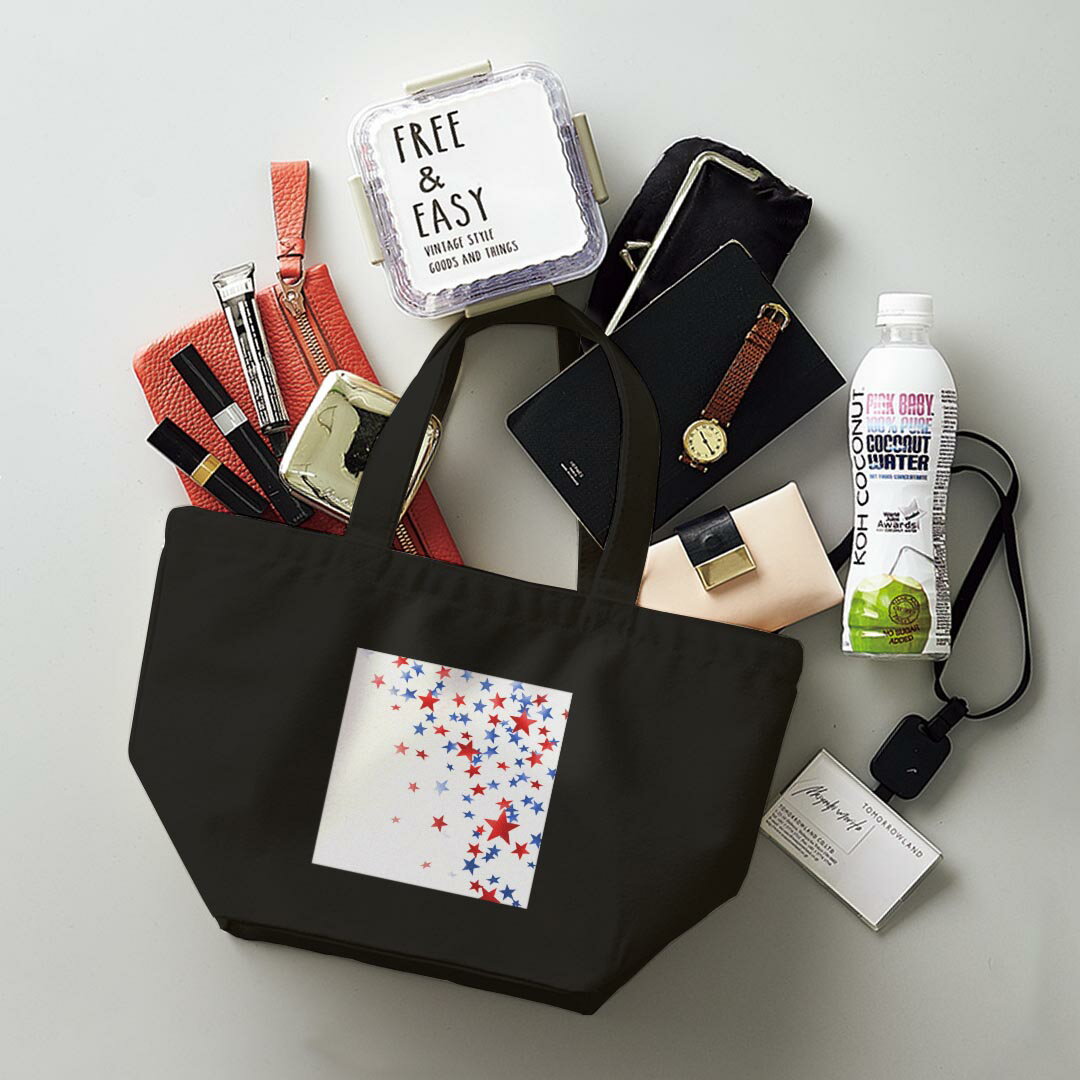 デザインランチバッグ キャンバス デイパック バッグ レディースバッグ トートバッグ ナチュラル 黒 black 004472 星 赤 青