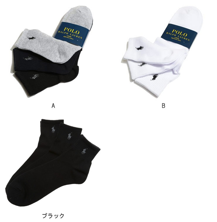 大きいサイズ メンズ POLO RALPH LAUREN (ポロラルフローレン) ワンポイントロゴ リブ クォーターソックス 3足セット ソックス ショートソックス セット 通勤 通学 学生 27-29cm BT2009004