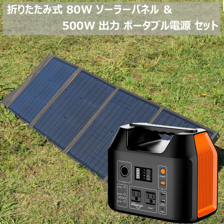 ソーラーパネル+ポータブル電源 セットポータブル電源 大容量 150000mAh R500 +ソーラーパネル 80W 純正正弦波 防災 蓄電池 発電機 停電 家庭用蓄電池 車中泊 ソーラー アウトドア キャンプ 災害 AC DC USB出力 予備電源 非常用 アウトドア用品 キャンプ用品
